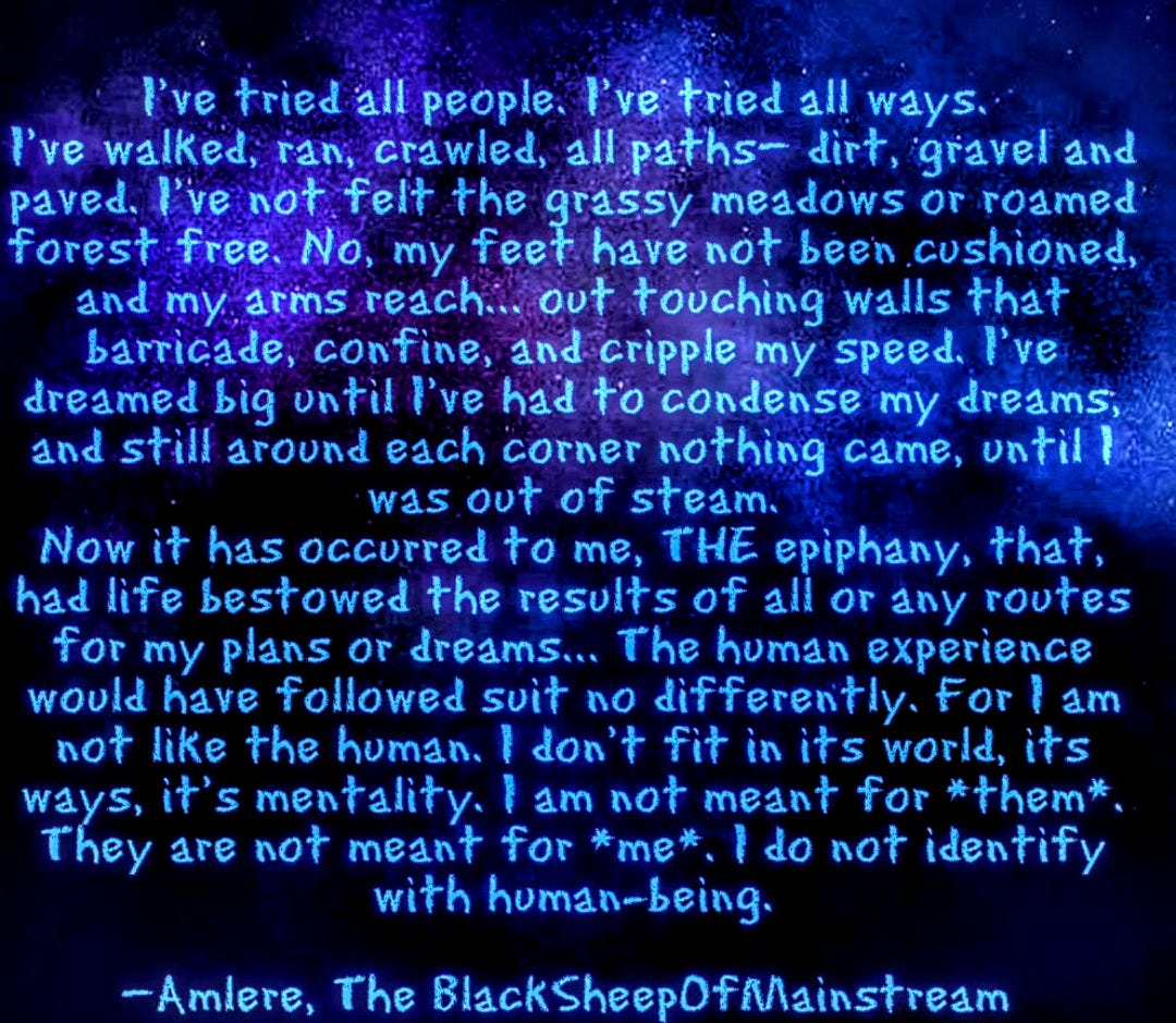 "I Do Not Identify"AmlereJun 24, 202414ShareThese poems speak for themselves. This has been my experience being human. Try as I may, strive as I might... this plane, this realm, in which others live, just isn't mine.